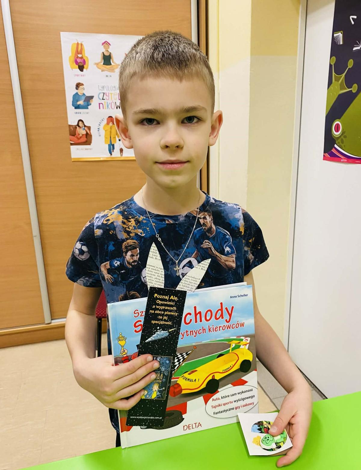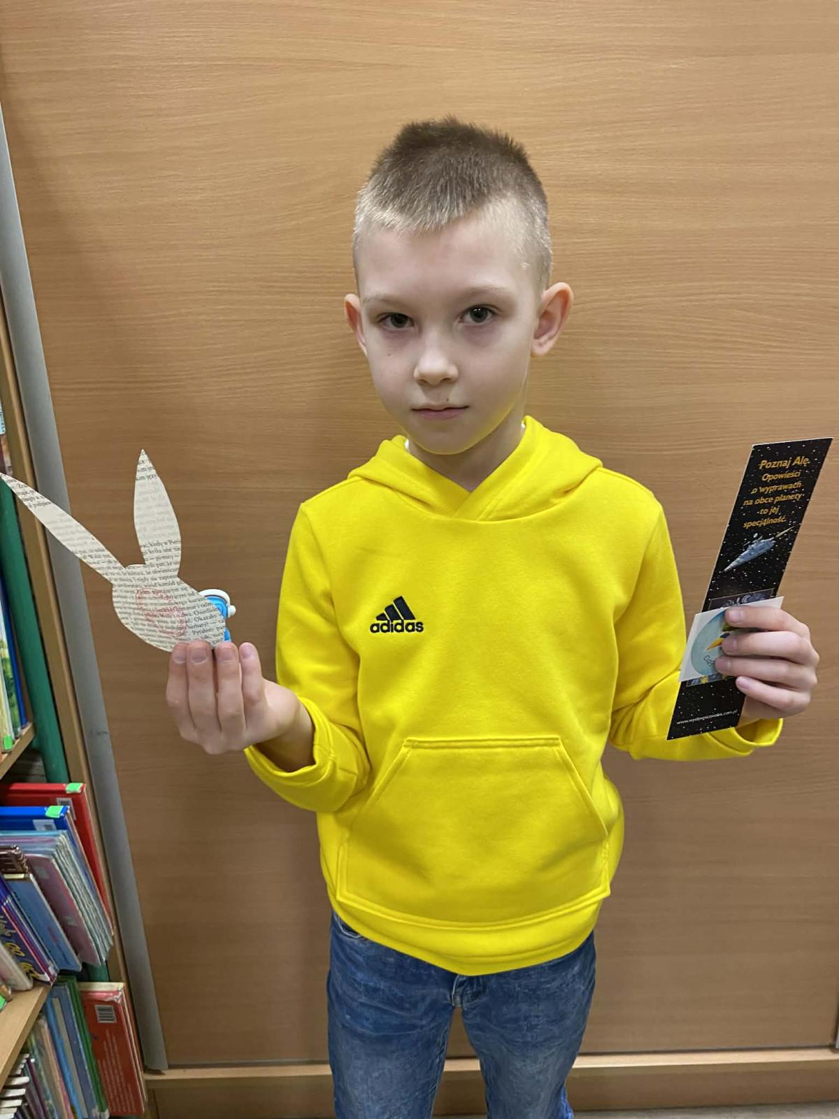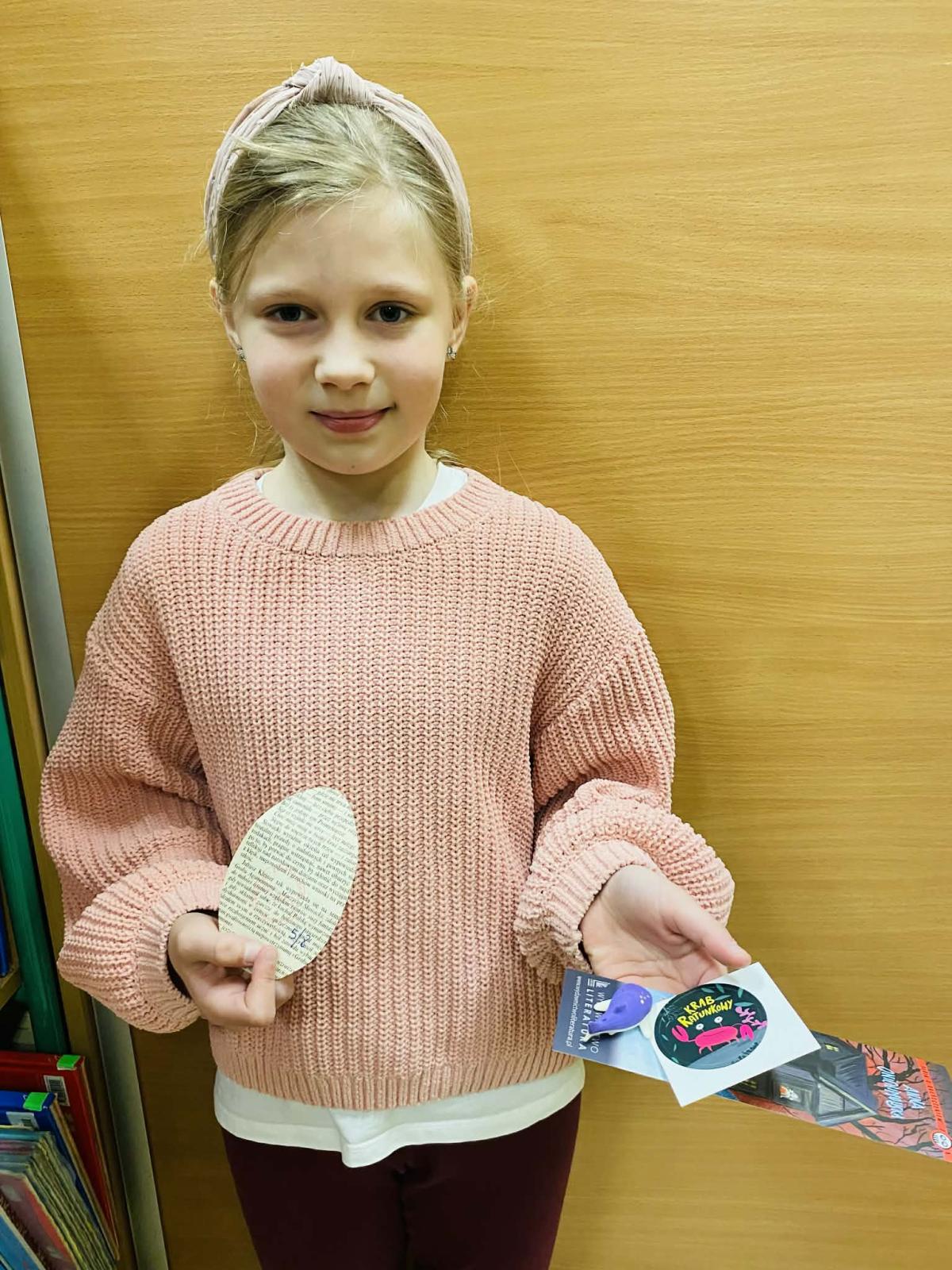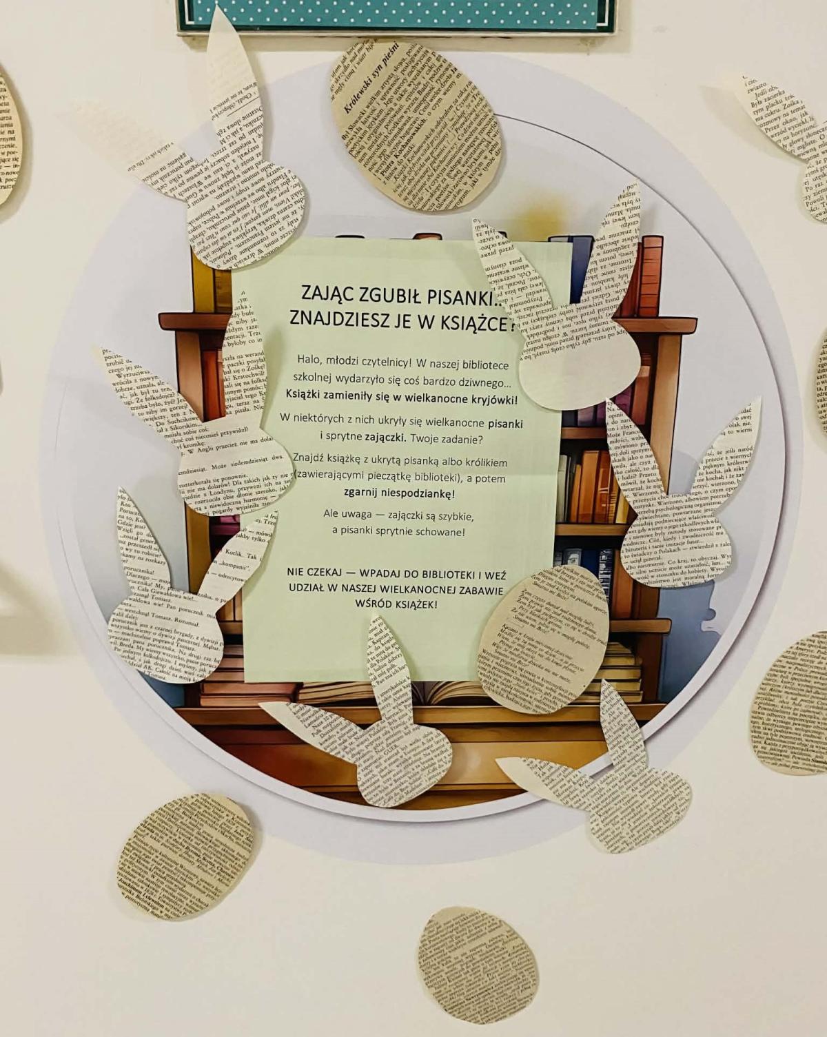 W każdym z przygotowanych woluminów ukryto niespodziankę — papierową pisankę lub sylwetkę zajączka, wykonane ekologicznie z makulatury. Dopiero po dopełnieniu formalności i wypożyczeniu lektury uczniowie mogli sprawdzić zawartość książki. Spośród wszystkich ukrytych elementów tylko kilkanaście zostało opatrzonych pamiątkową pieczęcią biblioteki i to właśnie one gwarantowały zdobycie upominku.