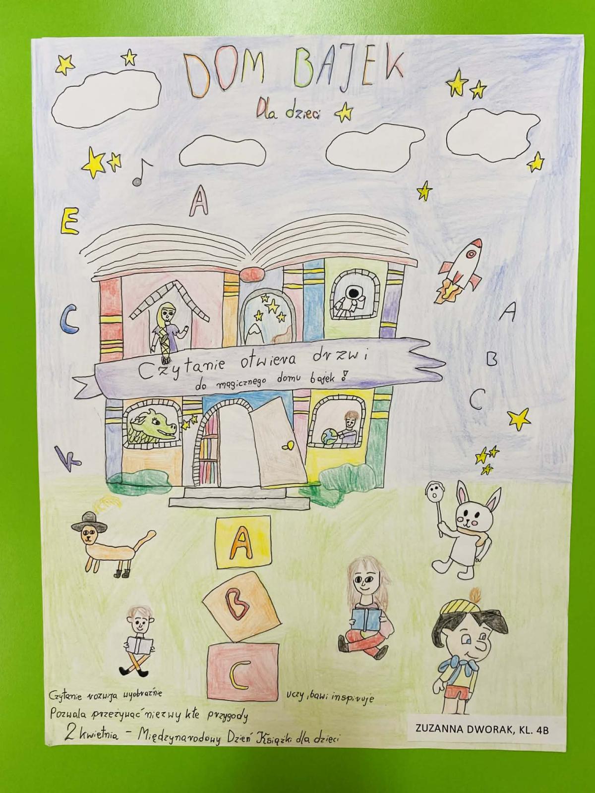 W przeddzień Międzynarodowego Dnia Książki dla Dzieci — obchodzonego 2 kwietnia, w rocznicę urodzin wielkiego pisarza Hansa Christiana Andersena — w bibliotece szkolnej odbyło się rozstrzygnięcie konkursu plastycznego pt. „Dom bajek dla dzieci”. Wydarzenie to, adresowane do uczniów klas 1–8, miało na celu szeroko pojętą promocję czytelnictwa.