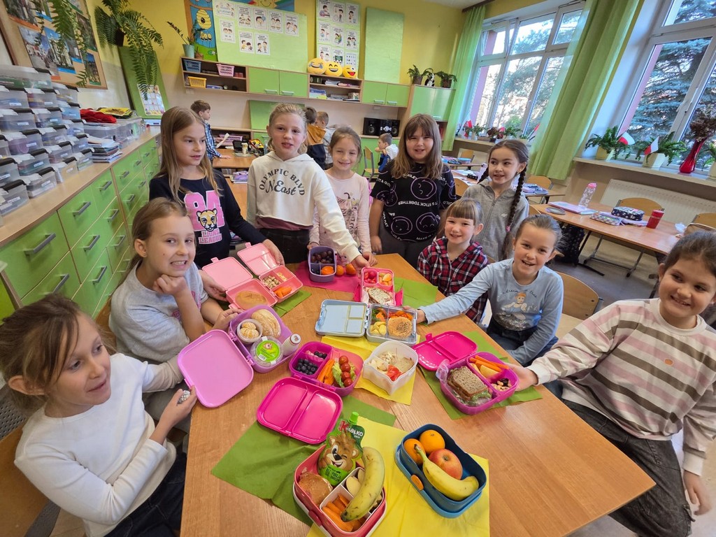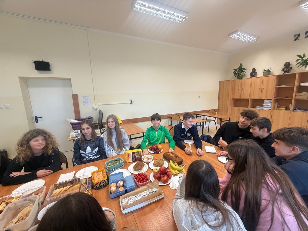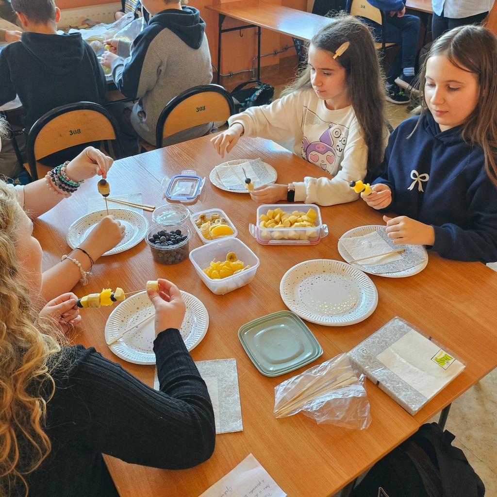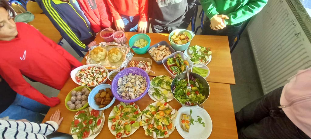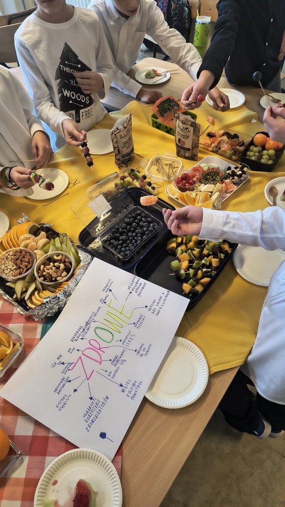 Dużym zainteresowaniem cieszyła się również klasowa degustacja zdrowych przekąsek, podczas której uczniowie mogli spróbować samodzielnie przygotowanych owocowych i warzywnych smakołyków, pełnoziarnistych wypieków czy naturalnych napojów. Degustacji towarzyszyła wymiana przepisów – każdy mógł zaprezentować swoje propozycje zdrowych dań i przekąsek.