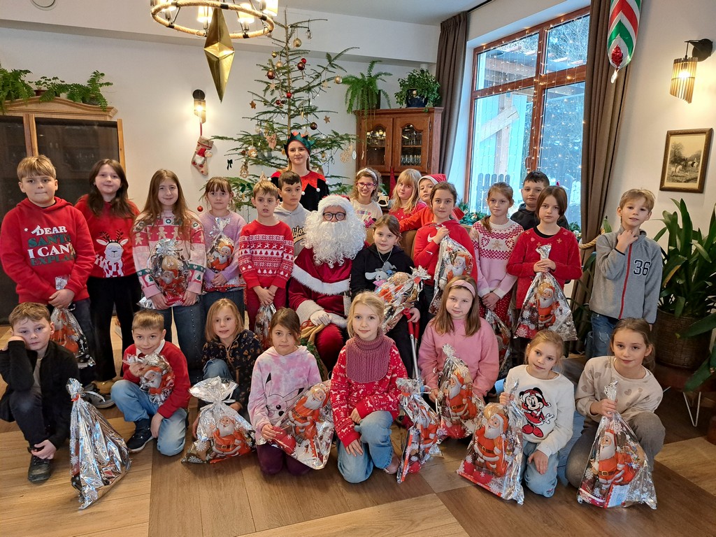 Najbardziej wyczekiwanym momentem dnia było spotkanie z Mikołajem, który — ku ogromnej radości dzieci — przybył do Końskiej Doliny, w towarzystwie wesołej pomocnicy. Wychowankowie przywitali magicznych gości z wielkim entuzjazmem. Nie zabrakło rozmów, uśmiechów oraz wręczenia prezentów. Każde dziecko mogło uwiecznić te radosne chwile na pamiątkowym zdjęciu.