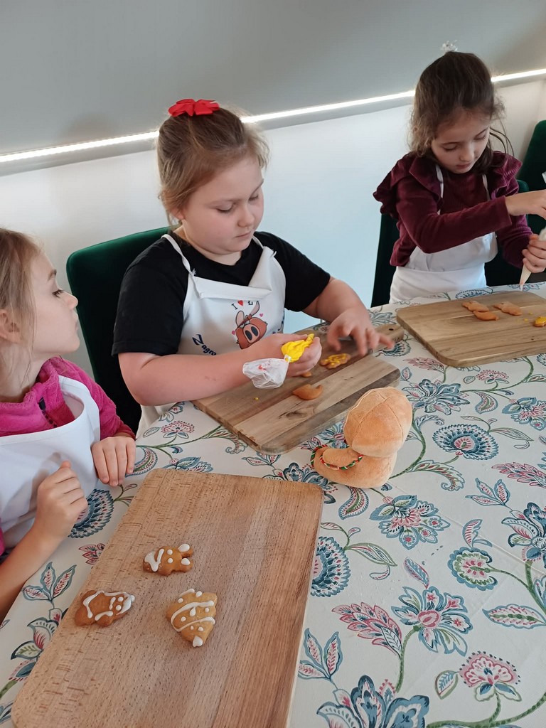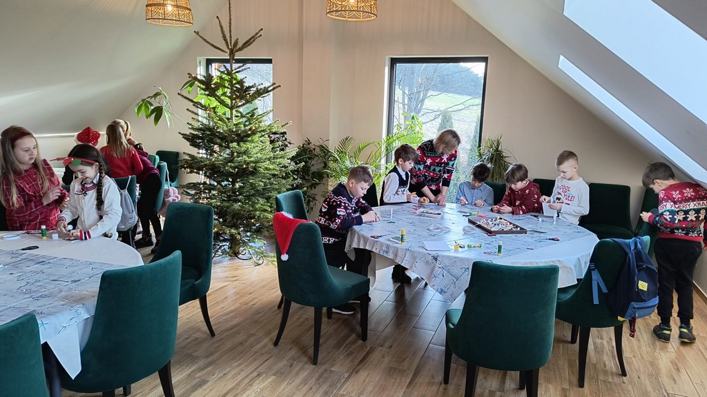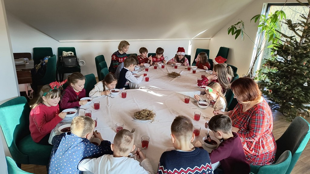 Pod okiem gospodarzy uczniowie piekli i zdobili aromatyczne pierniczki oraz tworzyli kartki świąteczne i tradycyjne ozdoby choinkowe, które później zawisły na wspólnie ubieranej choince. Nie zabrakło też wspólnego śpiewu kolęd. Kulminacyjnym punktem spotkania była tradycyjna wieczerza wigilijna, podczas której uczniowie mieli okazję spróbować potraw charakterystycznych dla polskiego stołu świątecznego, a także poznać symbolikę i zwyczaje związane z tym wyjątkowym dniem.