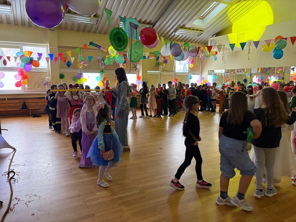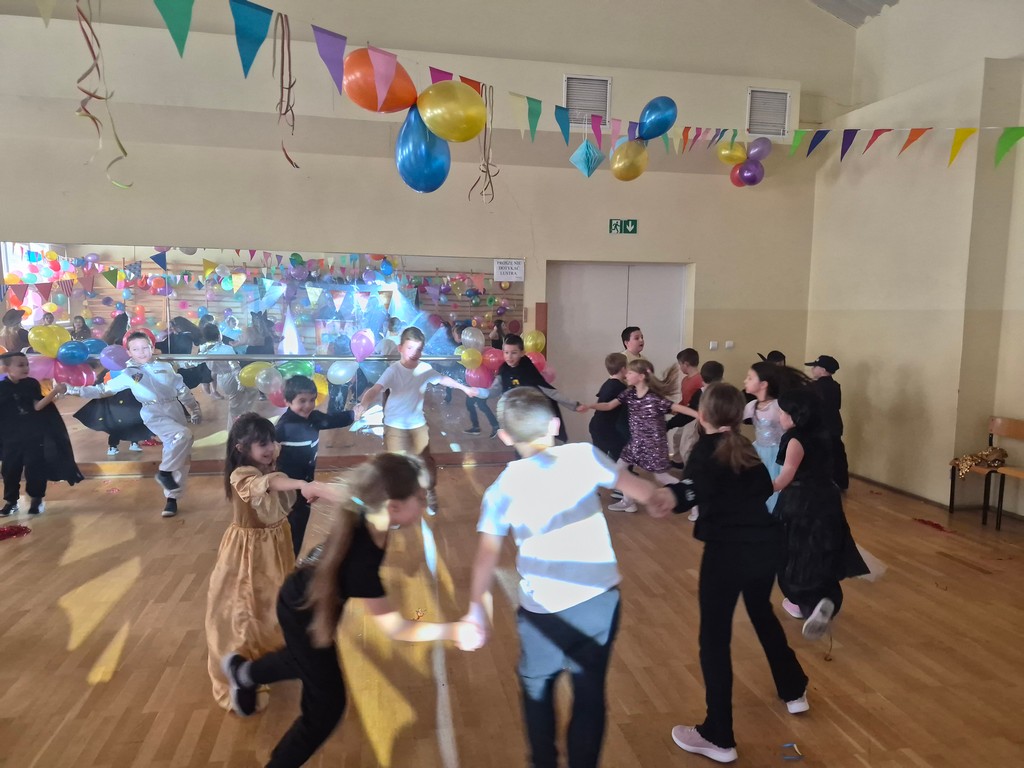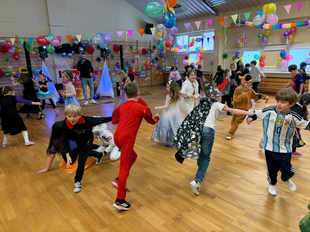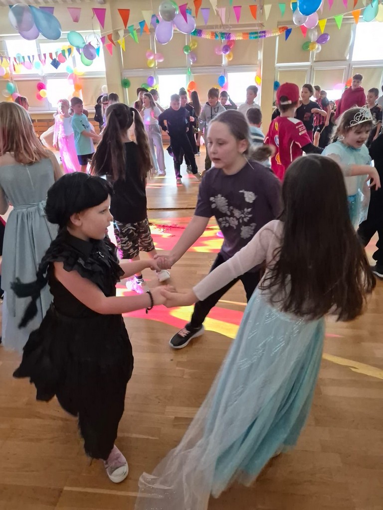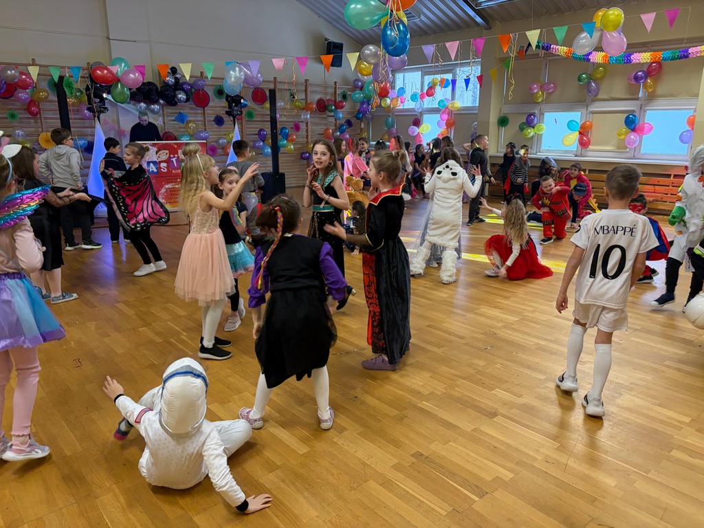 Pielęgnując dawne zwyczaje, 13 stycznia uczniowie naszej szkoły z klas I-III uczestniczyli w zabawie karnawałowej, którą poprowadziła profesjonalna i pełna energii firma Aster. To wydarzenie od pierwszych minut wypełniło salę śmiechem, muzyką i kolorami, tworząc atmosferę, którą dzieci zapamiętają na długo. Wspólne układy taneczne i zabawy muzyczne sprawiły, że parkiet był pełen od początku do końca. Dzieci chętnie naśladowały prowadzącego, a dynamiczna muzyka dodawała energii nawet najbardziej nieśmiałym uczestnikom.