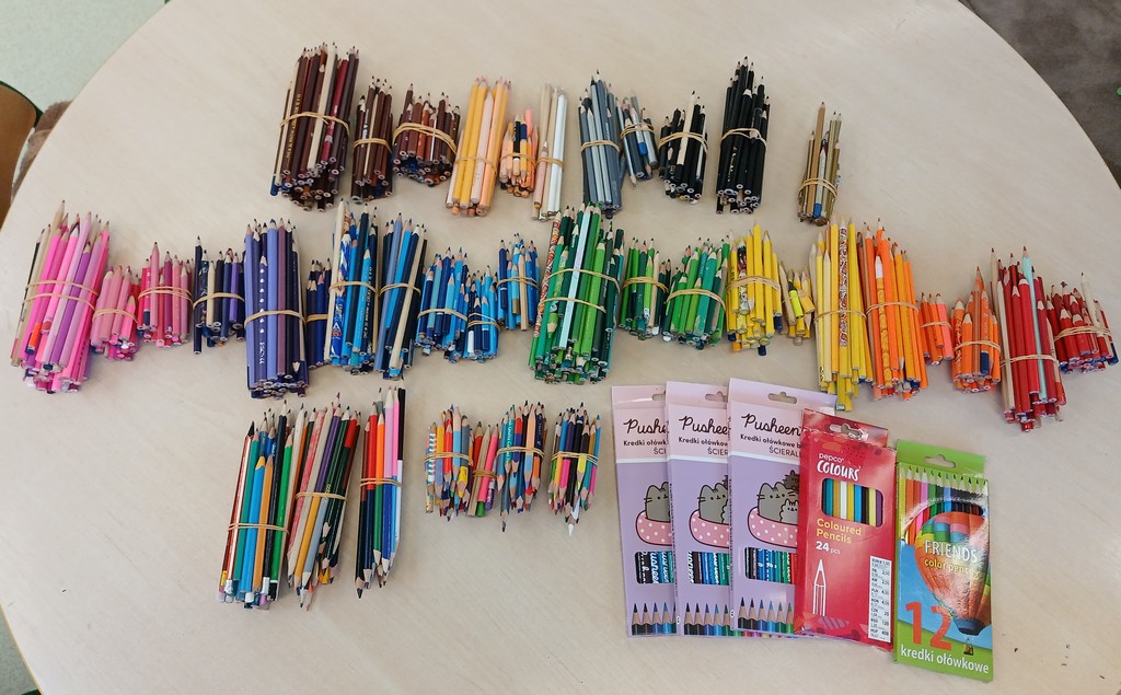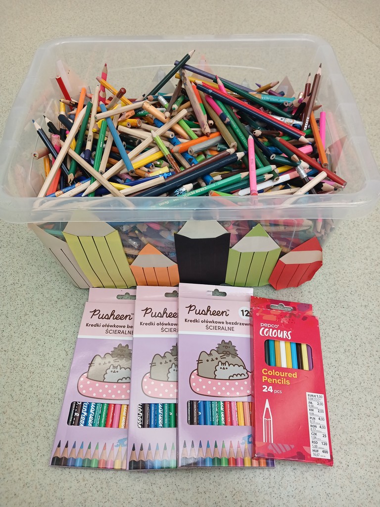 Nasza szkoła wzięła udział w akcji charytatywnej dla Fundacji „Dom Kredek”, której celem była zbiórka kredek nowych i używanych dla dzieci przebywających w szpitalach i placówkach opiekuńczych. Inicjatywa spotkała się z dużym zaangażowaniem uczniów, którzy chętnie przynosili kredki, chcąc sprawić radość innym. Dzięki wspólnemu wysiłkowi udało się zebrać setki kredek, które zostały starannie posegregowane, zatemperowane i przygotowane do przekazania organizatorom akcji. Udział w akcji był nie tylko okazją do pomocy innym, ale także cenną lekcją dla uczniów. Pokazał, że nawet najmniejszy gest – jak oddanie jednej kredki – może wywołać uśmiech na twarzy dziecka, które tego potrzebuje.
