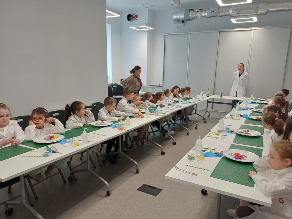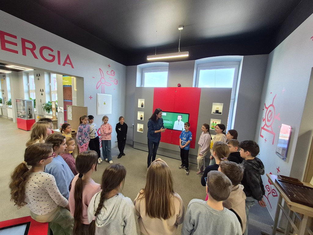 17 kwietnia 2026 r. klasy Ia oraz IIIb pod opieką z p. Joanny Sarnowskiej, p. Anity Hajduk oraz p. Joanny Mazur wspólnie odbyły wycieczkę edukacyjną do Generatora Nauki w Jaśle. Jest to innowacyjne centrum edukacyjne promujące naukę poprzez zabawę i doświadczenia, inspirowane postaciami Ignacego Łukasiewicza, Hugona Steinhausa oraz Rudolfa Weigla. Znajduje się tam 62 interaktywne stanowiska oraz przestrzeń do rozwijania kreatywności. Generator Nauki to miejsce, gdzie nauka staje się fascynującą przygodą, a interaktywność pozwala na lepsze zrozumienie świata i wszelkich zjawisk w nim zachodzących. Podczas pobytu w Generatorze Nauki dzieci wzięły udział w warsztatach Laboratorium Małego Naukowca, zgłębiając tajniki chemii i fizyki poprzez przeprowadzenie własnych doświadczeń. Zwiedziły obiekt oraz bardzo aktywnie korzystały z wszelakich interaktywnych stanowisk. To eksperymentowanie i doświadczanie dostarczyło im masę wrażeń. Były zafascynowane, podekscytowane i uśmiechnięte, a to chyba najwłaściwsza rekomendacja miejsca i formy spędzonego wspólnie czasu.